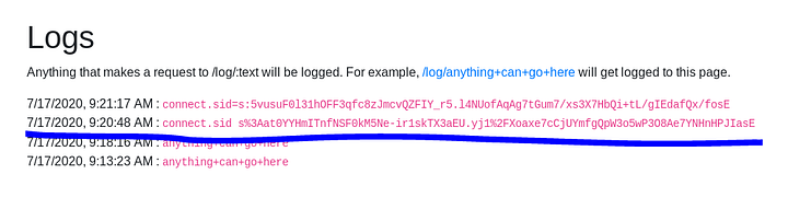 Anything that makes a request to /log/:text will be logged. For example, /log/anything+can+go+here will get logged to this page.