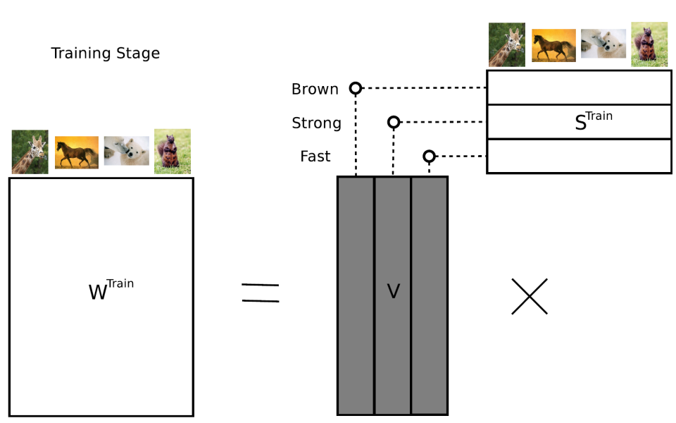 They also train an a*m Signature matrix in an unsupervised manner. a is a number of (binary or soft) class attributes which can be found in the dataset, from external data, or in an unsupervised manner.