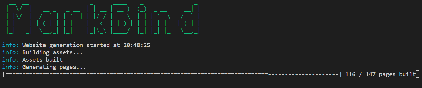 When building pages, a progress bar is shown. However, when using gitbash on Windows terminals (or any mintty terminals), the progress bar does not show.