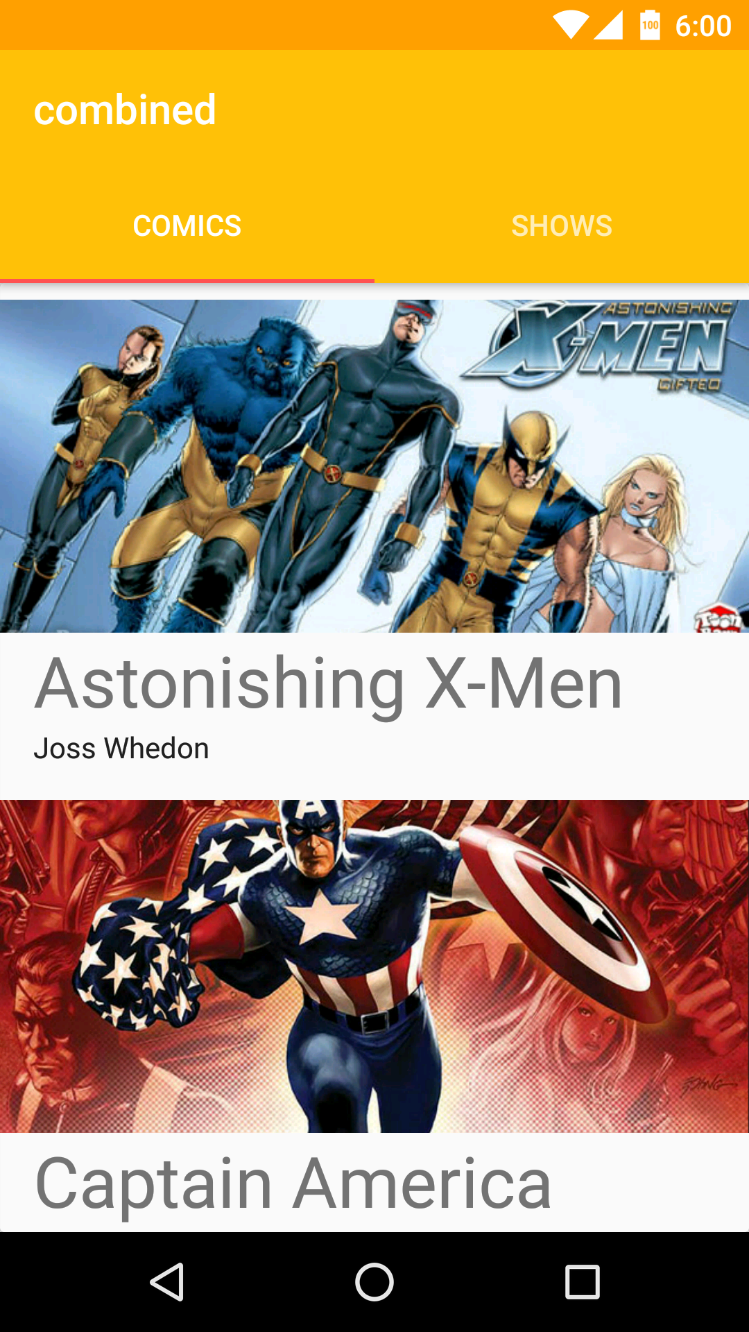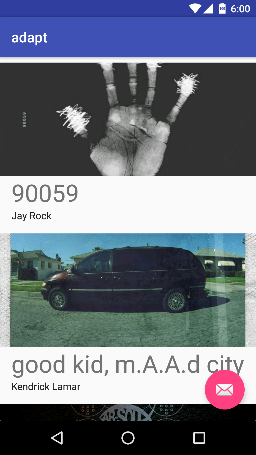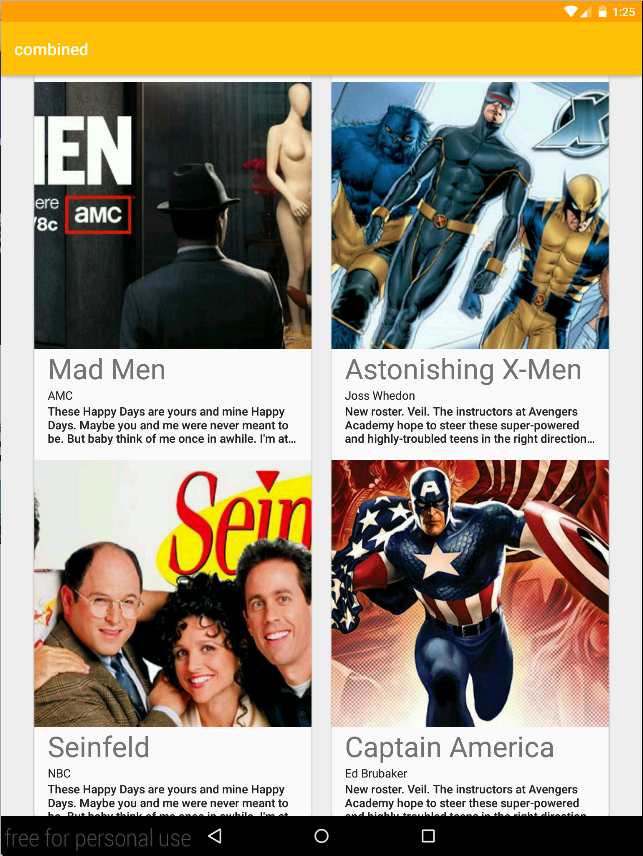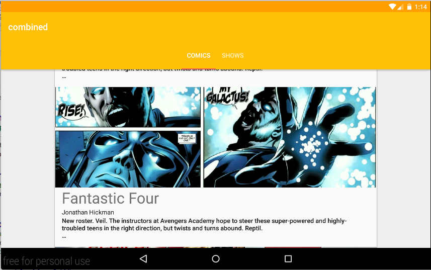 To move from the AlbumActivity to CombinedActivity, press the Fab.