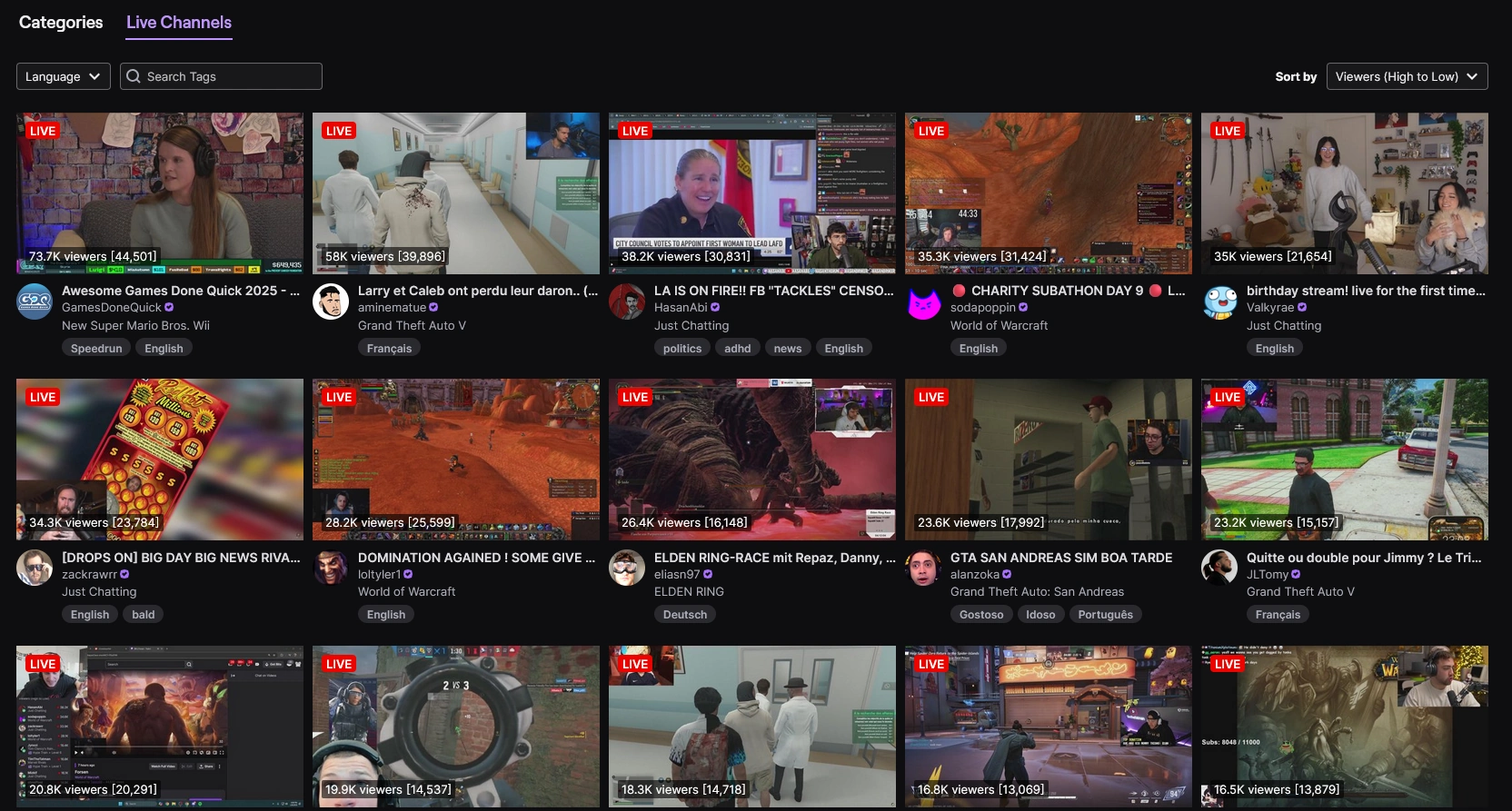 Twitch [Chatters Count] Shows the amount of people in the chat: under the player next to the viewer count in the main/directory page Some reasons why numbers may differ: more viewers than chatters: bots, stream autoplays on the main page of twitch, people watch not logged in more chatters than viewers: bots, Chatterino users (or other chat clients)