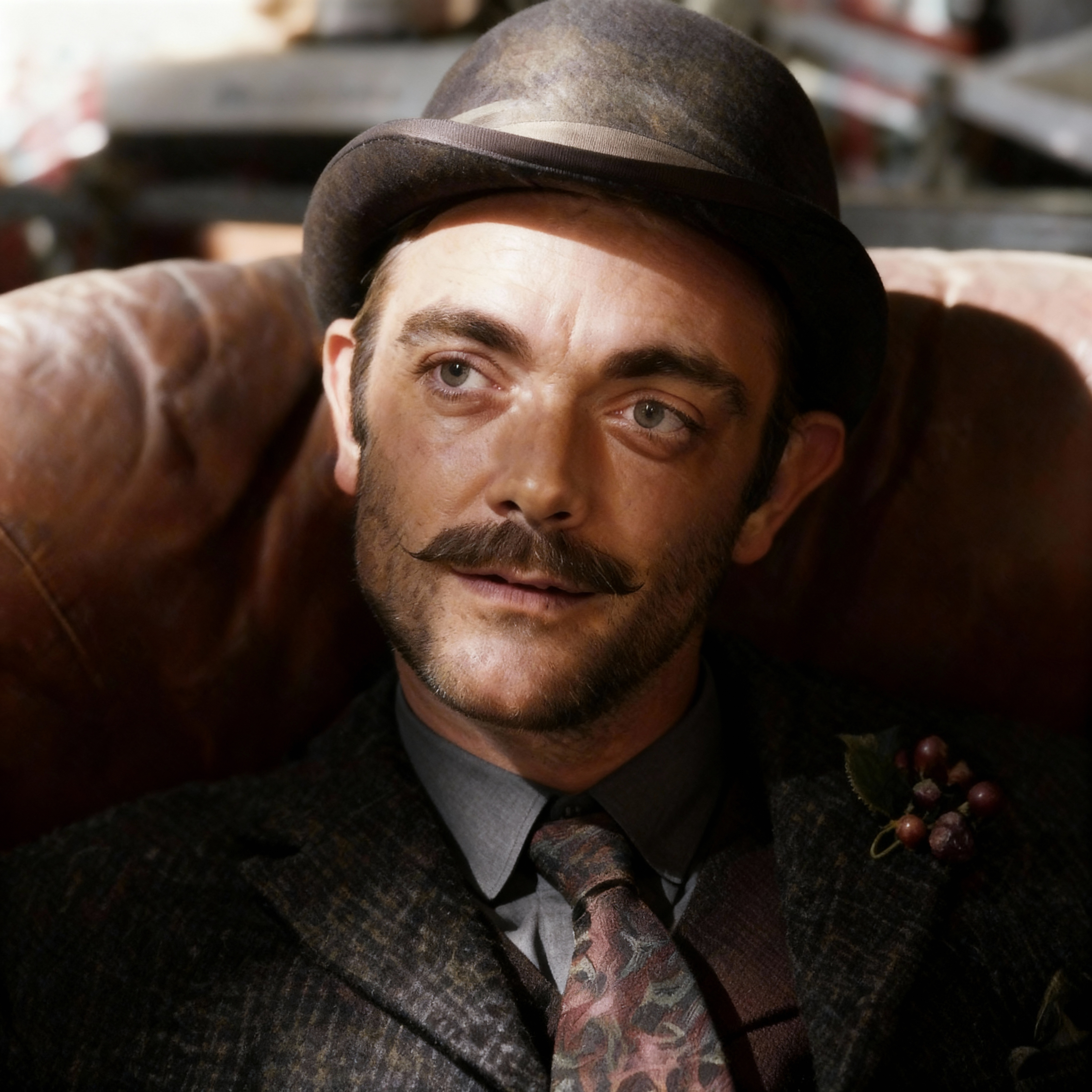 Hendricks notices four gentlemen, similarly dressed, scattered around the room watching.