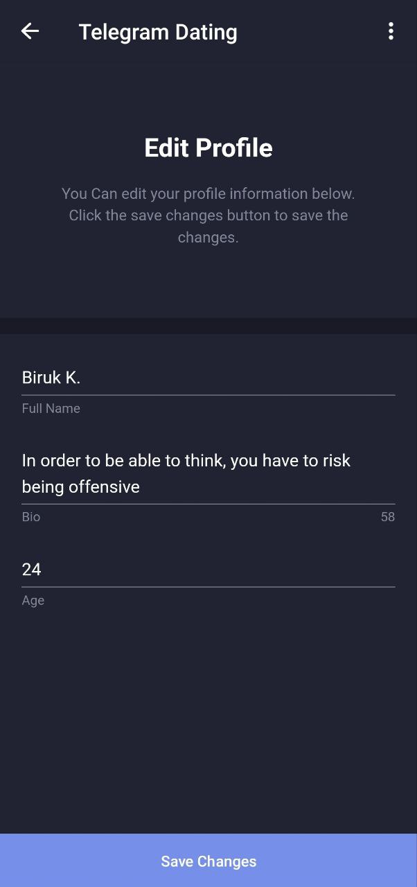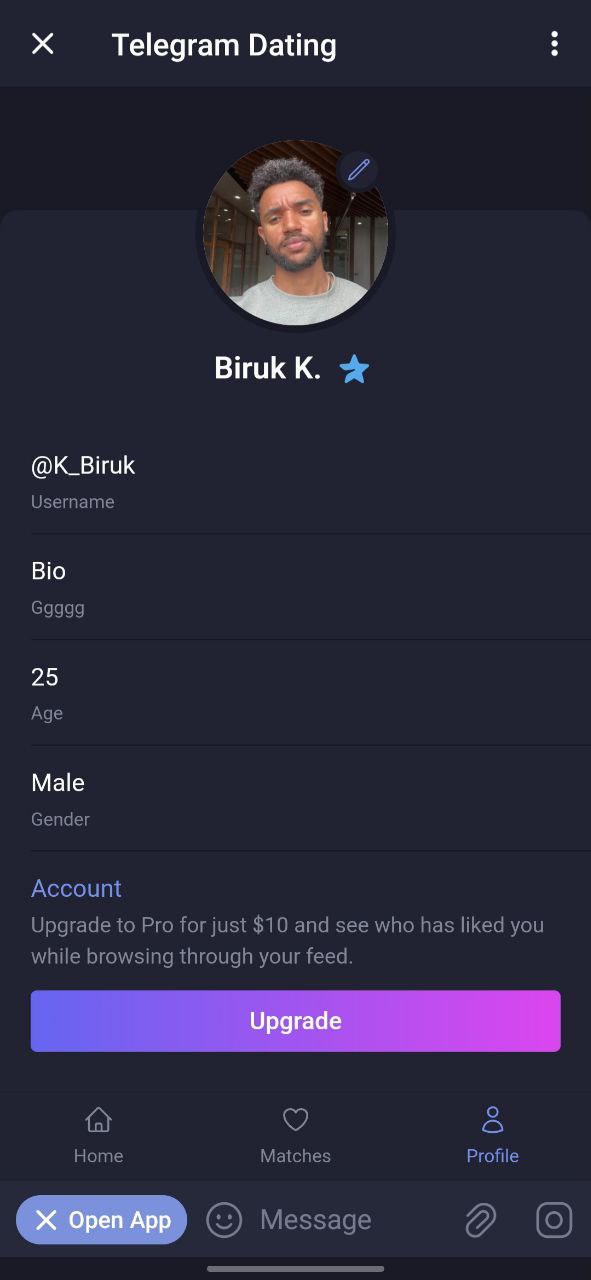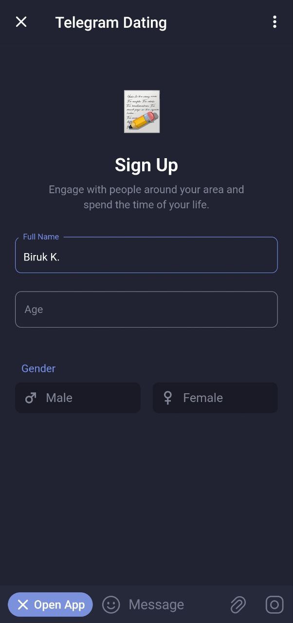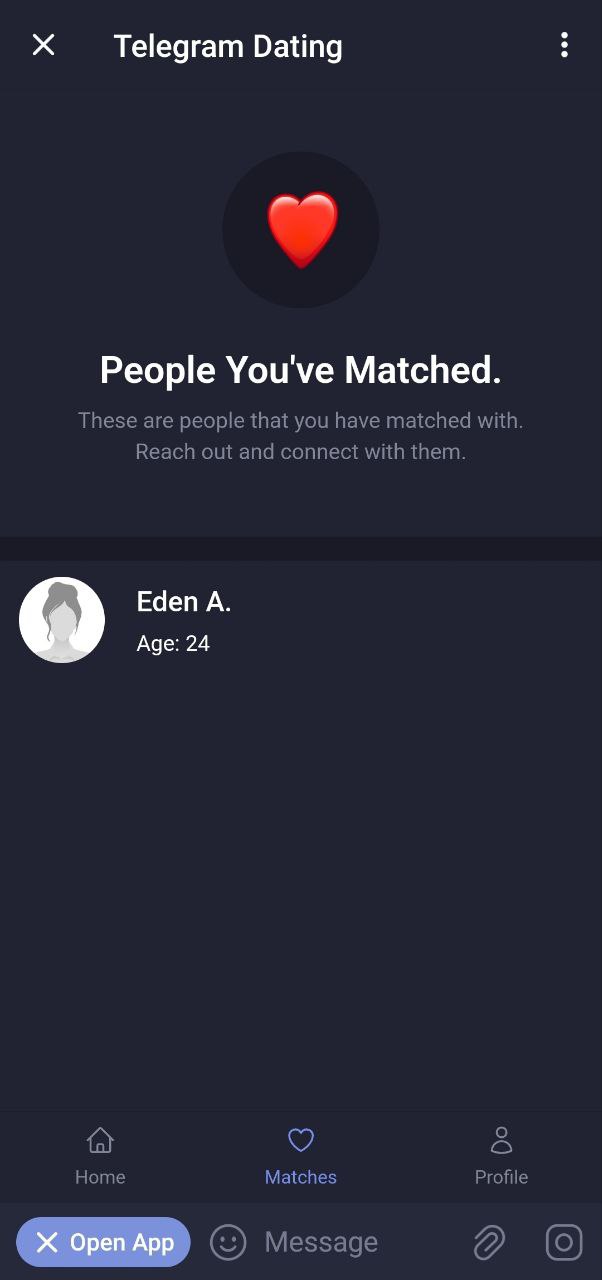 This miniapp is built using the Telegram Mini App API and React JS. It facilitates users to connect with others and find matches based on preferences.